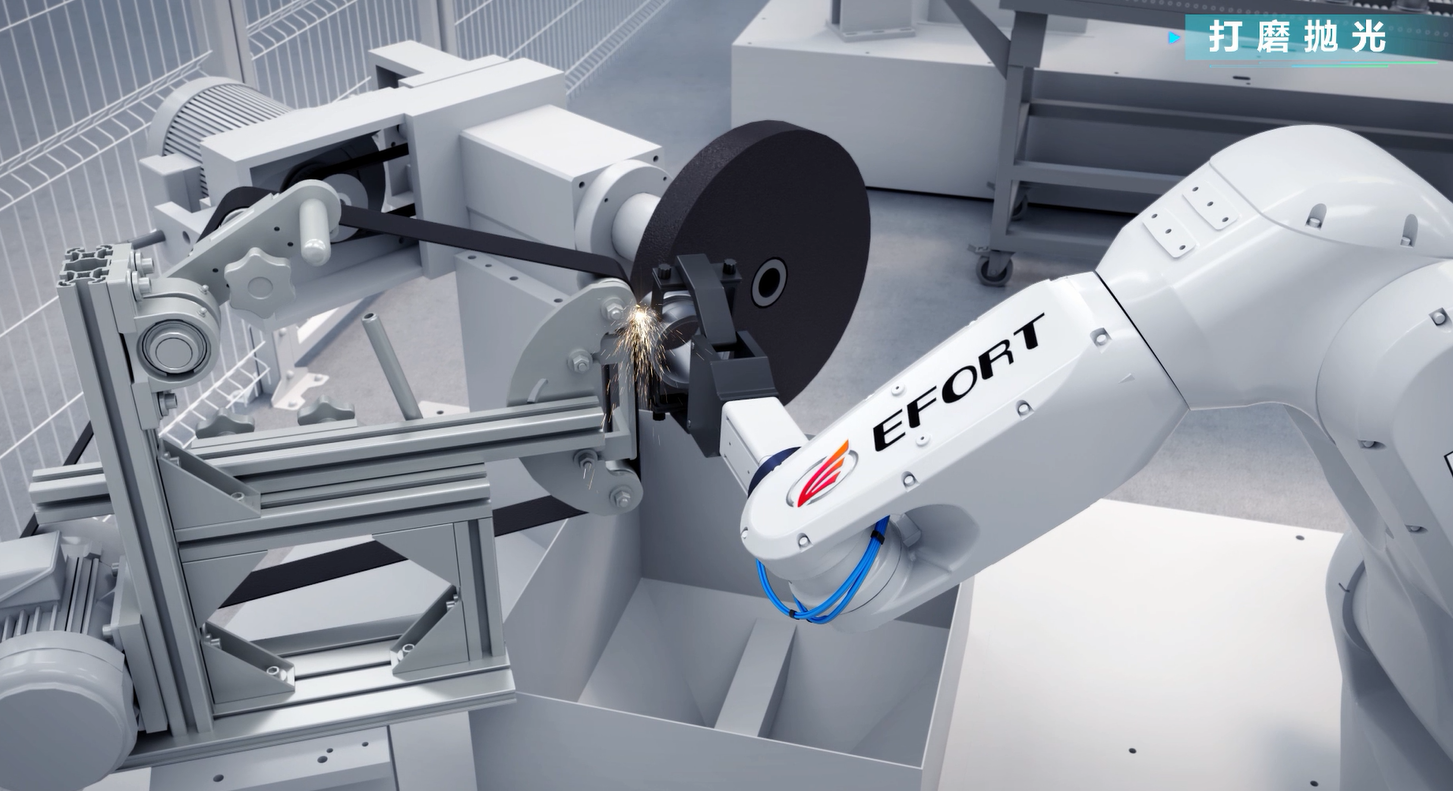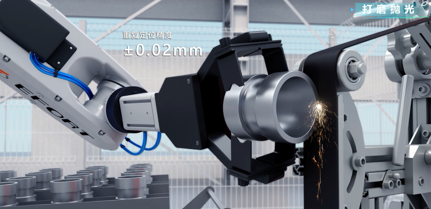 重載桌面系列機器人專為打磨場景設計的高剛性手腕關節耐沖擊和過載能力強,配合專為打磨行業開發的軟浮動功能,確保機器人打磨過程中不會出現過流,同時保證軌跡平滑,打磨速度均勻,保證打磨一致性達到95%以上。