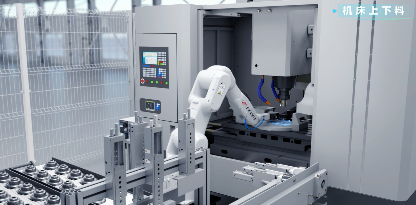 機床加工上下料空間狹窄,要求工件可準確放入夾具定位銷孔,同時加工現場充滿油污、水汽和金屬屑,對機器人靈活性,精度和防護能力有嚴格要求。重載桌面系列機器人靈活的配置和纖細的機身,專為狹窄工作空間設計,高達0.02mm的重復定位精度,可保證工件放置精準,全密封機身可應對惡劣的油污水霧,是汽車零部件等小件加工場景的不二之選。